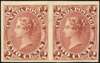 1864 2c, imperforate plate proof in dark rose on India paper affixed to card, a very fine horizontal pair. Unitrade 20TC.
