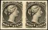 1868-90 'Large Queen' ½c imperforate plate proof in black on India paper, affixed to card, a superb horizontal pair with wonderful colour and impression. Beautiful and rare. Unitrade 21P. Ex Sir Gawaine Baillie (Sothebys 10 May 2006, lot 927).