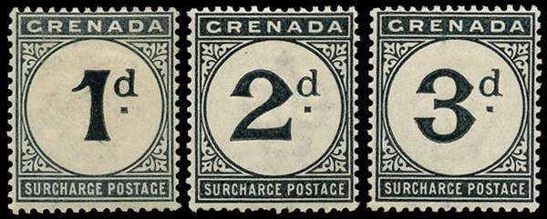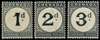 Postage Due. 1892 wmk CA set of 3 to 3d, part o.g. (1d) or o.g. 2d with a few short perfs and 1d and 3d with insignificant perf tones, still a fine set with very fresh colours. The 2d and 3d extremely scarce in unused condition ! (cat £475).