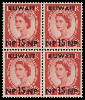 1958 15np on 2½d carmine-red Type II block of four, unmounted o.g., scarce multiple
