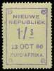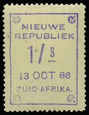 1886-87 "1/s" violet on yellow, dated "13 OCT 86", large part o.g. Couple of trivial natural paper irregularities, still very fine for this. A rarity with this form of value, only six examples recorded by Jonkers. (cat £750)