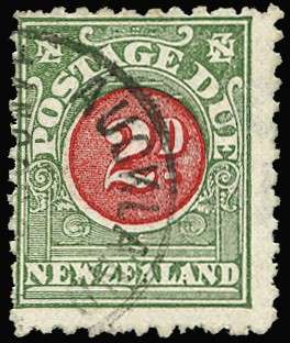 Postage Due. 1904-08 2d red and green, "Cowan" unsurfaced paper with wmk sideways, lightly cancelled by part "AUCKLAND" cds, dated "14 NO 06". Typical perfs and centring, still much above average for this scarce stamp. (cat £130)