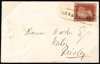 1856 1d Red-brown Pl.28. Very fine envelope sent from Sandyford, Glasgow to Paisley bearing a 1d red-brown Pl.28 (SG 29) lettered FG, neatly tied by a crisp black, boxed "SANDYFORD" Scots local cancellation (Type VIII). Backstamped by a black Glasgow dispatch cds for SE.26.1856, and a green Paisley arrival cds for the same day. Alcock scarcity rating E. Ex. "Claymore".
