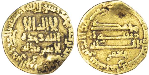 Abbasid, temp. Al‑Rashid (AH 170‑193 / 786‑809 AD), gold Dinar, AH 178 / 794/5 AD, citing Ja’far, 3.83g (A. 218.11). Good Fine to About Very Fine, slightly bent, marks and encrustations to surfaces.