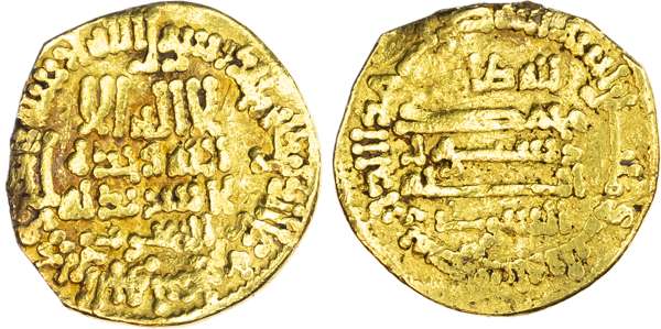 Abbasid, temp. Al‑Ma’mun (AH 194‑218 / 810-833 AD), gold Dinar, AH 203 / 818/9 AD, citing al‑Sari ibn al‑Hakam, governor of Egypt and the military commander Tahir ibn al‑Husayn, 3.92g (A. 222.7). Fine, clipped.