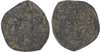 Arab-Byzantine, temp. Abd al‑Malik ibn Marwan (AH 65‑86 / 685‑705 AD), bronze Fals, Standing Caliph type, Qumm