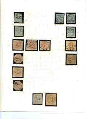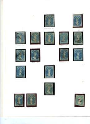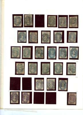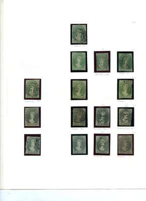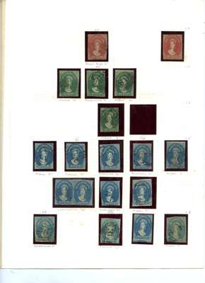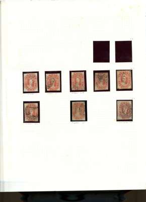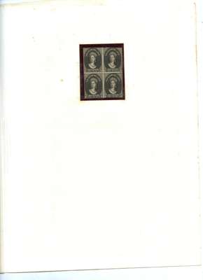 1853-67 imperforate collection (136) on leaves. offered intact, commencing with Chalon 2d Plate Proof block of four in black; 1853-4 1ds (5) one four-margined; 1853 4ds (7) with SG 5 (3) and 6, one of the SG 5s with four margins but thinned, and SG 9 four margins; Large Star watermark page with 1d (2, one used with three margins), 2d (4) one with four margins; 4d (13, one unused, cut into but with large margin at base); no watermark 2d (two margins) and 3 x 4d, one very fine on piece; 1857-67 1d, 2d and 4d including a number of unused and a range of 1/-s and 6ds. Some foxing affects the early pages but the stamps have mostly survived; the condition throughout is mixed. There is postmark interest including postal pen cancels