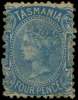 1870 4d blue watermarked single-lined '4', perf 12. A rather narrow example, gum stained, but reasonable appearance and a rare stamp. SG 130, £1200