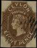 1857-9 8d brown with four clear margins, light barred cancel, fine. SG 7,...