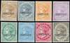 1872 original eight values (i.e. no 32c, 64c) on thin glazed card, imperforate proofs overprinted CANCELLED Type D7. Fresh and very attractive. SG 121/132