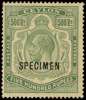 1912 500r green overprinted SPECIMEN Type D12, lightly hinged o.g., the gum a little toned otherwise fine. SG 322s,...