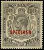 1912 100r grey-black overprinted SPECIMEN Type D12, lightly hinged o.g., very fine apart from an unobtrusive crease; good appearance. SG 321s, £425