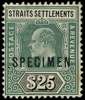 1906 $25 grey-green and black overprinted SPECIMEN Type D12, o.g., fine save for a little gum loss around hinge. SG 139s,...