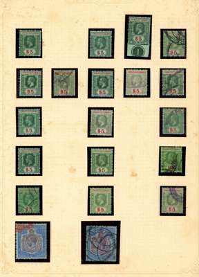 1912-23 watermark MCA collection on leaves (184) mint and used, duplication, the low values not of much consequence (missing a couple of mint examples) but with mint 6 x $2, 10 x $5 mostly in good condition. Also $25 fiscally used and postally used, this latter comprehensively used with parts of three cancels. Despite mixed condition, a worthwhile lot