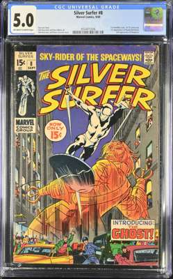 Silver Surfer #8 (Marvel Comics 1969) CGC Graded 5.0, off white to white pages. First appearance of Flying Dutchman, second appearance of Mephisto, first monthly issue.