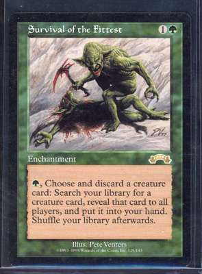 This lot features a Survival of the Fittest card from the Exodus set, with evidence of only very light play.