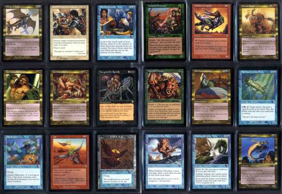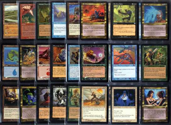 This lot features a complete Invasion set, originally released on the 1st of October 2000 the Invasion block focused more on multicolored ‘gold’ cards. You'll be bidding on one copy of every card from the set, a springling of foils throughout the set and the 1/1 Bird Token. The set comes complete in alphabetical order and stored in ultra pro 9 pocket pages. They come from the personal collection of a long time magic player and while conditions vary the overall condition of this set is Excellent with the main cards as follows: