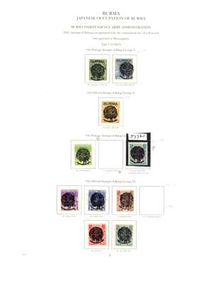 1942 Myaungmya Type 1 Peacocks o.g. group with the KG V trio, KG VI Postage 9p (ex Gerald Davis) and 4a (latter with BPA ‘short’ Certificate, 1967), and KG VI Officials less 1½a (the 6p stained). Several are signed, a very good group. SG J1, 4 and 6 with SG sales cards. SG J1-4, 6, 7-9, 10-11, £873