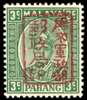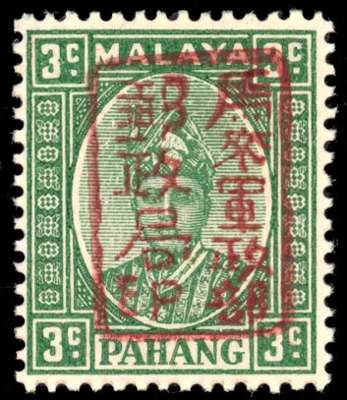 1942 Pahang 3c green with Chop A in red, unmounted o.g. BPA Certificate (1999). SG 177a, £275