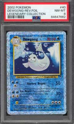 This lot features a reverse foil Dewgong from the Legendary Collection, it is authenticated and graded by PSA and awarded an 8.