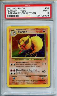 This lot contains a holo Flareon from the 2002 Legendary Collection graded 9 by PSA.
