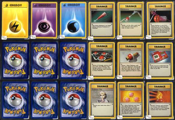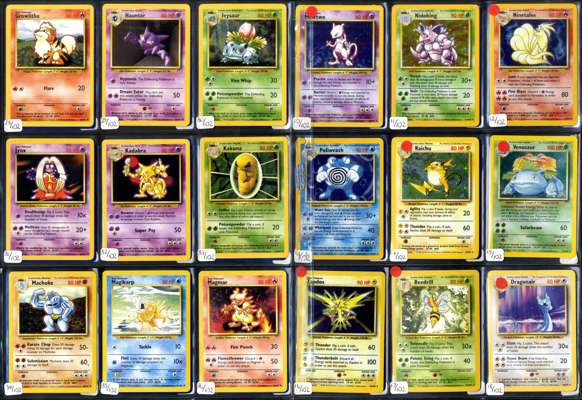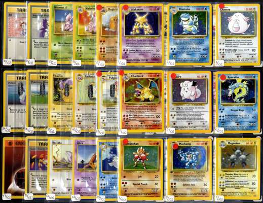 This lot contains a complete Unlimited Pokémon Base Set 102/102.