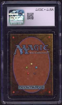 This lot features the master of trickery and misdirection, the Mahamoti Djinn! This copy is from the 1993 Unlimited Edition and has been signed by one of the most iconic Magic artists ever, Dan Frazier! The card has been authenticated and graded by CGC and has been awarded a 3.5 Very Good+ with the authentic Autograph signature scoring a 9!