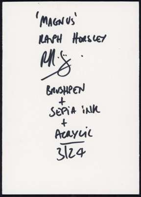 Sketch titled ‘Magnus’ by Ralph Horsley. Brushpen + sepia ink + Acrylic, 3/24.