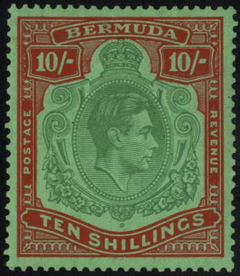 1939 (Jan.) 10/- bluish green and deep red on green paper, u/m. SG 119a, cat...