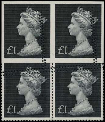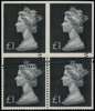 1972 £1bluish black, block of 4 doubly misperforated, probably printer's waste, still most attractive, unmounted o.g. SG 831bvar