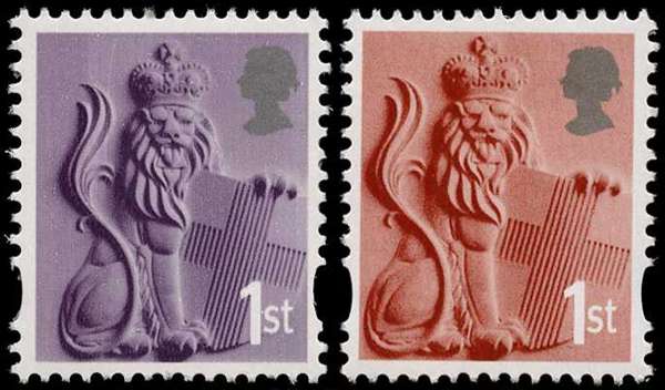 REGIONALS - England 2003 (1st) Crowned Lion supporting shield of St George, colour trial, Type II in mauve and silver, gummed, perforated, with phosphor, offered with issued stamp for comparison fine unmounted o.g. SG EN7var