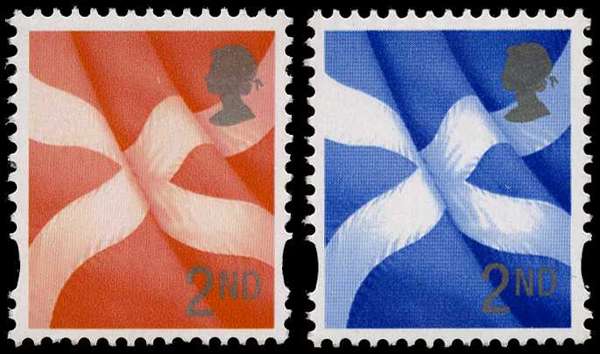 REGIONALS - Scotland 2003 (2nd) Saltire, colour trial in light-red and silver, gummed, perforated, with phosphor, offered with issued stamp for comparison fine unmounted o.g. SG S109var