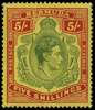 1938 5/- green and red on yellow paper, o.g. with excellent colour, the hingeing a little extensive. SG 118, £140