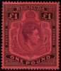 1937 £1 purple and black on red paper with the major FF #2 joined ER, State 1 (on this printing only). A fine o.g. example. SG 121a, £1100