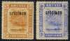 1916 5ct orange and 8ct ultramarine overprinted SPECIMEN Type D12a, the 8ct centred right. SG 49s, 50s, cat £120