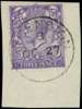 1912-22 3d violet tied to paper piece by complete 23mm code 'B' Ascension cds for 'OC 27 22' SG Z44 £180