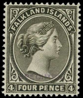 1896 4d olive-black overprinted 'SPECIMEN'...