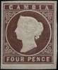 1869-72 no watermark 4d pale brown, good to large margins, embosseing slightly misplaced. Small brown patch of gum otherwise large part og. Fresh appearance and fine. SG 2, £500