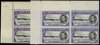 1938-44 ½d black and violet u/l corner marginal blocks of 4 perf 13 and perf 13½, both showing R 2/2, re-entry doubling of right vertical frame lines, hinged only in margin, unmounted o.g. (CW 1a,14a) SG 38var/38bvar