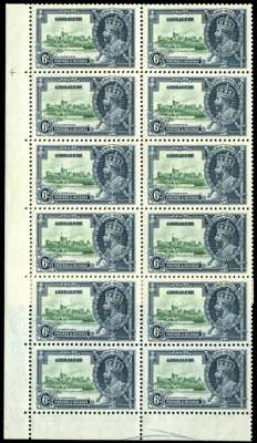 1935 6d Jubilee left two columns of sheet, R9/1 extra flagstaff, unmounted o.g., one sensible fold. Very fine. SG 116, a, £317