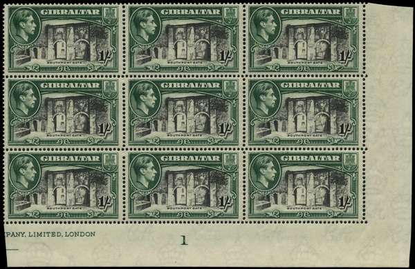 Gibraltar 1938 1/- perf 14 Plate block mint