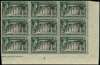 1938 1/- perf 14 corner block of nine with FP 1 and part imprint, hinged on selvedge and R8/4 and 8/6 only. A scarce block, the reverse showing some natural gum skips, still very fine. SG 127, £405