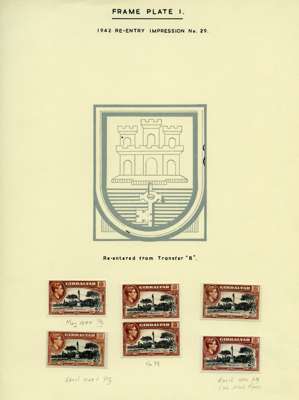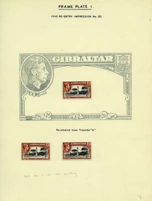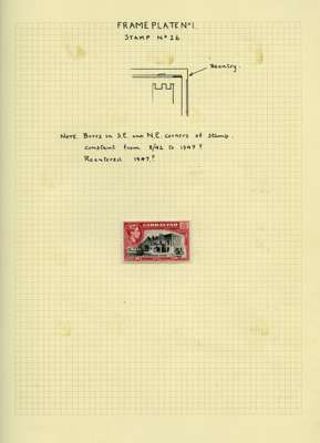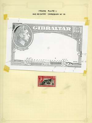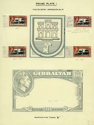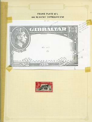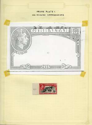 1942-51 small study of mint 2/- and 5/- re-entered positions on leaves, with blown-up illustrations. 19 x 2/- and 8 x 5/-, also the scarce July 1951 5/- in an unmounted Plate 2 block of eight. SG 128b, 129b