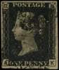 1840 1d black, plate 4 (AK) 4 margins, close...