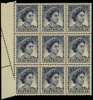1959-63 5d deep blue l/h marginal block of 9 with pre-perforation crease in margin, causing l/l stamp to be part imperforate with margin and diagonal perforation in margin. A most attractive variety, fine unmounted o.g. SG 314var
