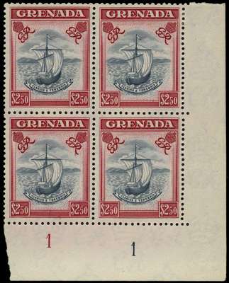 1951 $2.50 slate-blue and carmine, lower right corner block of four with Plate 1-1, unmounted o.g. SG 184