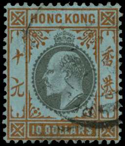 1903 Wmk CA $10 slate and orange on blue, lightly struck by cds with a clear profile, very fine. SG 76
