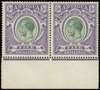1913 5s KGV lower marginal pair, (selvedge has vertical crease due to folding along the perfs), lightly toned on reverse, large part og, fresh appearance SG 51