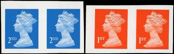 2000 (2nd) bright blue and (1st) bright orange horizontal imperforate pairs (4mm gap) fine unmounted o.g. plus a few QV to...