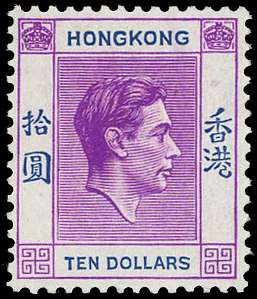1947-52 $10 reddish violet and blue on chalky paper, distinctive bright shade from a late printing, unmounted o.g. SG 162b, £200